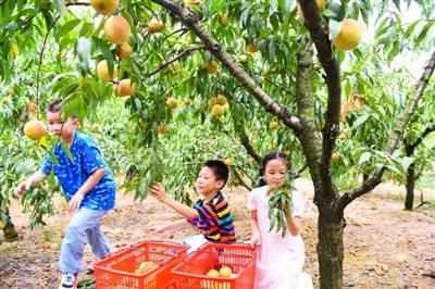 该果园总面积150亩,种植桃子、梨子、葡萄、无花果等10余种水果,采摘期为4月底至10月底。时下,桃子、梨子、葡萄大量成熟,迎来采摘旺季。