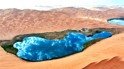 近日,色彩斑斓的丘间湖泊宛如璀璨的宝石镶嵌在巴丹吉林之中。初秋时节,在巴丹吉林沙漠,广袤无垠的沙海绵延起伏,众多丘间湖泊色彩斑斓,吸引了许多游客前来观赏。