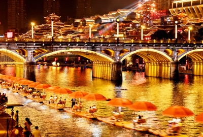 近年来,湖北省恩施土家族苗族自治州宣恩县用“景城一体·主客共享”理念,沿穿县城而过的贡水河两岸布局栈道、亭台、廊桥、彩灯、游船等旅游设施,将以县城为核心的仙山贡水旅游区建成了国家4A级旅游区。城市山水、民俗风情、璀璨灯影等相互交融,形成了独具特色的山区县城夜景,吸引各地游客前往游玩,为当地发展全域旅游注入了新动能。(据新华社)