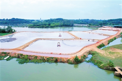 通过航拍镜头,记者看到岸边5个大小不一的水池依次排列。这些水池发挥什么作用呢?