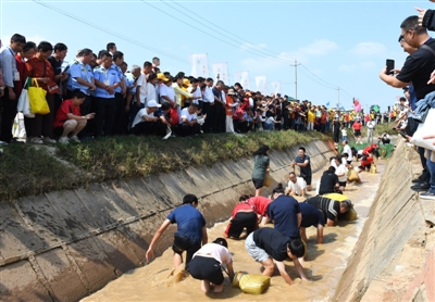 本次农民趣味运动会,设置了农民喜闻乐见的拔河、运粮、摸鱼等比赛项目,均取材于农村生产生活场景,赛场上人气爆棚,欢声笑语不断。