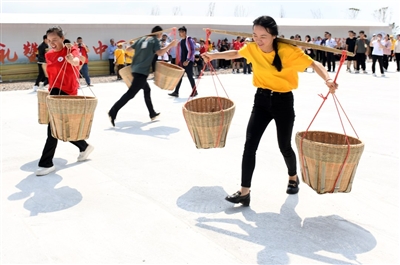 “看似简单,其实挺考验水平的,期间不能把红薯撒落,否则视为犯规。”热烈的气氛,感染着一旁观赛的村民,人群中不时发出讲解声:“就跟咱过去挑水一样。”