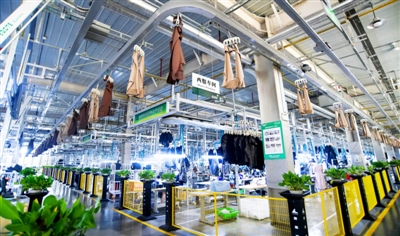 9月9日,赤壁高新区陆水工业园,壹嘉(湖北)科技制衣有限公司高档西服智能生产车间,一条条全智能吊挂系统高速运转,工人有条不紊作业。
