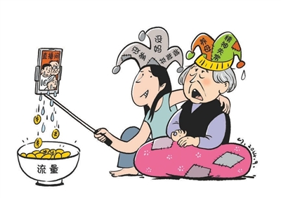 为了引流吸睛,不少网红编故事、卖惨博同情。 李嘉/漫画