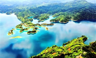 青山国家湿地公园境内山泉神韵、大小岛屿、水陆库汊交错有致,与周边的森林、草地融于一体,棺材山、马鞍山、磨盘山和白崖山上古木参天,500多个大小岛屿星罗棋布,层林尽染,柑橘漫山,百里飘香。