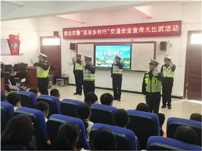 10月23日,咸安公安分局交警大队联合市公安局交警支队城区大队走进横沟桥镇初级中学,开展“美丽乡村行”交通安全巡回宣传活动,50余名学生参加活动。