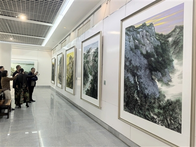 走进展厅,一幅幅精美的山水画作品呈现眼前。《走进西部》《情系河山》和《梦里家园》,多视角、多层次、多面貌地构建了一幅中国山水的雅致画卷,浓淡勾勒出我国各地的风光、风情。