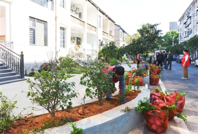 11月8日,咸安区林业局来到包保的咸安区温泉街道滨河社区四合院小区,同居民一道栽种黄杨、熊野紫藤、炮仗花千余株。