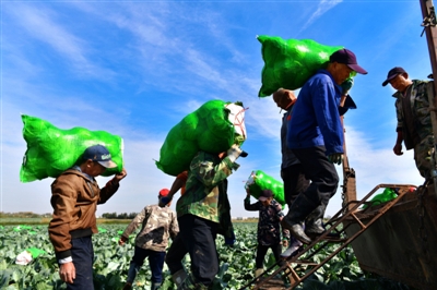 据了解,该镇今年包菜和白菜种植面积达10万余亩,部分早熟包菜已成熟上市,菜农们正加紧抢收外运。