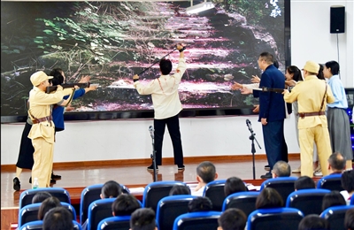 活动当天,何功伟中学师生们收看了广播连续剧《生之歌》宣传片,咸安区朗协老师们声情并茂地演出了何功伟英勇就义时的场景,何功伟中学19个学生现场高唱国际歌,激情诵读何功伟在狱中写的诗。