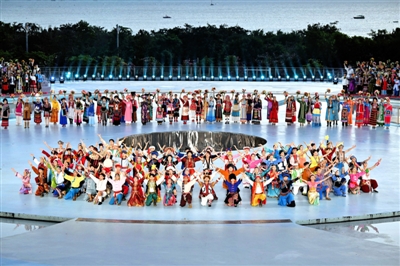 当日,第十二届全国少数民族传统体育运动会民族大联欢活动在海南省三亚市举行。