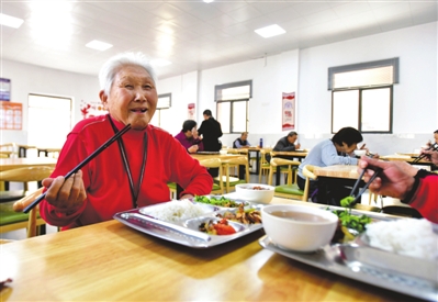 11月15日,赤壁市蒲圻街道办事处华舟社区幸福食堂,居民正在用餐。据了解,近年来,赤壁市通过改造提升、新建一批社区幸福食堂和助餐点,为孤寡、独居及生活困难的老年人提供营养餐,让他们乐享晚年生活。