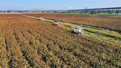 11月28日,咸安区向阳湖镇宝塔村双季高粱种植示范基地,收割机来回穿梭,时隔3个月,“红糯16号”高粱再迎丰收,群众成功实现“一种两收”。再生高粱是指在正季高粱成熟收获后,利用高粱茎节上的休眠芽萌发强特性,再生产一季高粱,实现一次播种两次收获。 记者 陈红菊 通讯员 陈润润 摄