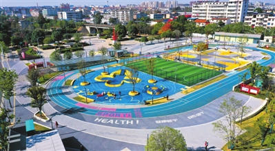近日,在咸宁高中对面,孩子们在咸宁桂花广场运动公园里嬉戏。这处占地1万平方米的运动公园,今年2月2日正式开园后,已成为市民的乐园。公园的色彩鲜亮活泼,蓝、黄、粉、橙等多种颜色融为一体,里面有儿童游乐区、球类运动区、板类运动区、市民休闲活动区。从两、三岁的孩子到七八十岁的老人,在其中都能找到适合自己的运动场地和设施。 记者 陈红菊 摄