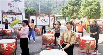 驻隐水村第一书记周斌在市朗协主席孙和平辅导下练习朗诵《隐水村赋》。周斌说:“文艺强基使我看到了三个改变,那就是村民的笑容发生了改变、村民的精神面貌发生了改变、人们向往美好生活的愿景发生了改变。这就是文艺扎根乡村的力量。”