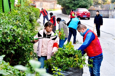 “环境卫生不能只靠党员干部,只有大家伙儿都参与、都行动,小区环境才会变得更好。”看着大家干得热火朝天,58岁的小区居民王晚珍也拿起了大扫帚,清扫小区绿化带内的枯枝落叶、垃圾杂物。72岁的陈桃仙老人不甘示弱,主动加入了清扫队伍。