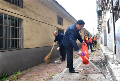 1月4日,城区各小区,在党员志愿者的带动下,小区居民齐上阵,开展“清洁家园 万人洁城”行动。当天,千余名党员志愿者下沉包保小区,与小区居民一道,清理小区卫生死角,清除“牛皮癣”,修剪绿化带……在大家的共同努力下,小区卫生环境进一步提升。据悉,此次活动旨在为即将到来的春节营造干净整洁、文明有序、健康祥和的节日环境和氛围。 记者 夏正锋 摄