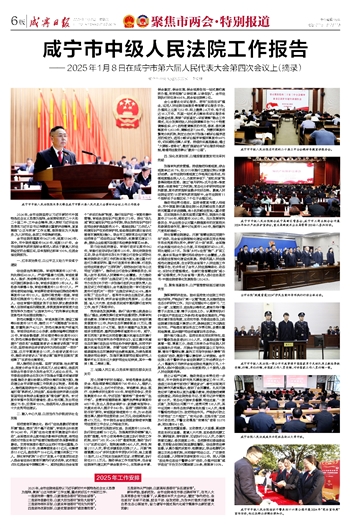 新年伊始,扬帆进发。全市法院将在市委正确领导下,在市人大及其常委会有力监督下,认真落实本次大会决议,锚定“争先进位、走在前列”目标不动摇,鼓足干劲、奋发进取,为加快打造武汉都市圈自然生态公园城市,奋力谱写中国式现代化咸宁篇章作出新的更大贡献!