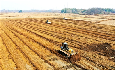 近日,赤壁市高标准农田建设项目(改造提升)车埠镇芙蓉村农田施工现场,推土机有条不紊地进行土地平整。