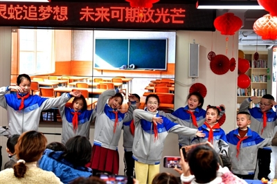 1月12日,咸安区浮山街道金桂社区,孩子们正在表演。