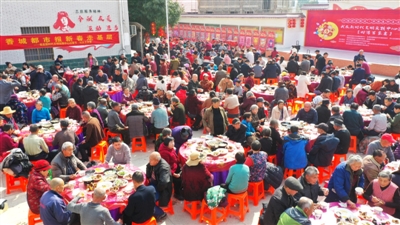 1月21日,“我在新时代文明实践中心过春节”村湾百家宴活动在咸安区浮山街道白鹤村热闹开席,村湾65岁以上老年人、返乡企业家等围坐一起吃百家宴、看文艺演出,一幅温馨和谐的景象。