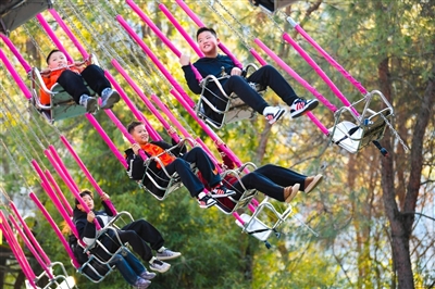 十六潭公园里,游客三五成群,家长们带着孩子在游乐设施间穿梭,脸上洋溢着幸福。湖面上,彩色的游船划过,游客们享受着湖面的宁静,畅谈着新年的喜悦,欢声笑语在湖面上荡漾开来,构成了一幅温馨和谐的画面。