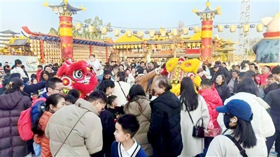阿拉丁欢乐城开展“新春游园会”,在景区内打造美食、非遗主题集市,集合20种本地美食、10个文创产品、5个非遗民俗、5个本地特产、6个互动游乐项目,打造集文化、娱乐、休闲、美食、聚会于一体的文旅盛宴;同步在市集开展期间穿插年味儿表演、有奖问答、百姓舞台等,让游客度过一个有年味的新年;景区内还设有欢乐大马戏、潮汕英歌舞、京剧变脸、踩高跷、民俗杂技等非遗民俗表演以及大屏幕抽奖互动等活动,丰富的游玩体验吸引大量游客来此欢度春节。