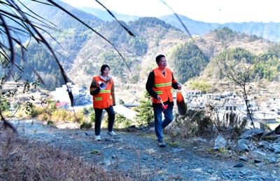 近日,在崇阳县高枧乡中山村,护林防火员正穿梭山间,进行日常巡查。