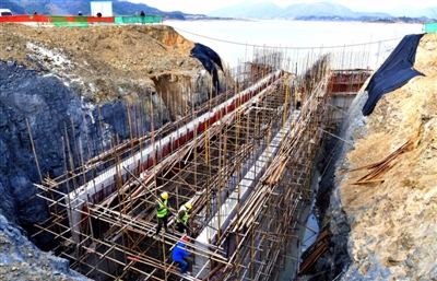 2月8日,通山县慈口乡,富水湖水下机器人试验中心项目现场,工人们正在进行水下机器人测试水槽建设。据了解,该项目计划总投资12.2亿元,分两期建设,其中一期投资2.2亿元,主要建设水下机器人试验基地、码头工房、科研人员服务中心等。目前,项目正在稳步推进中。 记者 夏正锋摄