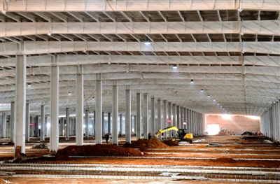 2月18日,咸安经济开发区湖北天逸纺织科技有限公司厂房内,工人们正在建设风道。