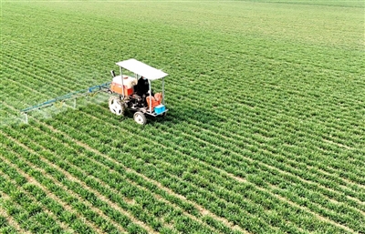 2月25日,河南省平顶山市宝丰县闹店镇农民驾驶植保机械开展病虫害防治作业(无人机照片)。早春时节,各地农民抢抓农时,开展春耕、春管等农事活动,田间地头到处是一派人勤春早的忙碌景象。 (据新华社)