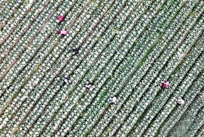 近日,在广西梧州市龙圩区大坡镇交村村生态蔬菜种植基地,菜农正在采摘春种蔬菜菜心,不断供应粤港澳大湾区市场。