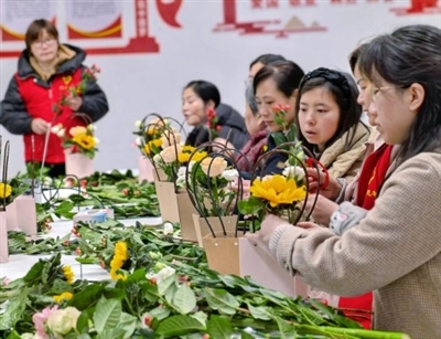 3月6日,咸安区永安街道西大街社区新时代文明实践站组织开展“凝聚巾帼力量,涵养清廉家风”三八妇女节插花主题活动。