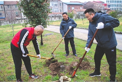 “我们种下去的不仅仅是一株株树苗,也是绿色希望。共筑绿色生态家园,是我们每个人的责任,希望我们每个人都能尽己所能为世界添上一抹绿,为后代造一份福。”活动伊始,联合水务湖北区域副总经理、咸宁联合市政工程有限公司总经理陈博说,每年一次的植树节活动,都务必要重视起来。到达植树地点后,志愿者们各司其职,分成不同小组,有的负责挖开土坑植树;有的负责为刚种下的树苗浇水;有的负责清理现场的杂物……经过团队人员的齐心协作,一株株新树苗在潘湾水厂的土地上扎根,为水厂增添了新的生机。