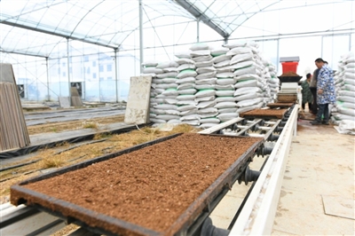 在通城县五里明海农业耕种专业合作社,村民张小财正在进行田间作业,进行育秧铺底土、播种、覆土等工序。合作社里的浸种、催芽、育秧工作正在有序进行中。