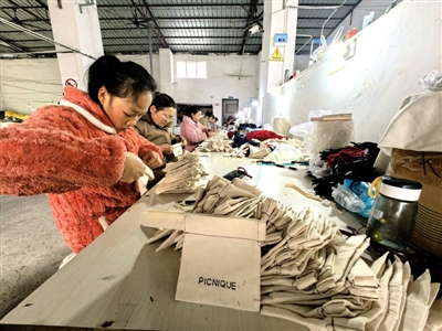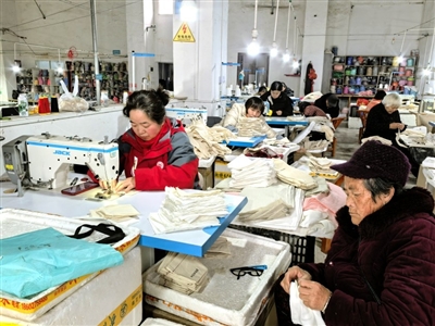 “在家里又能照顾孩子上学,还能一个月拿到5000元的工资,这样的生活太幸福了。”家住高桥村的女工吴芯说,她的薪资水平是工人们的平均数,部分熟练工、技术工种还能挣得更多。