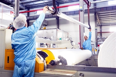 3月21日上午,赤壁恒瑞非织造材料有限公司的生产车间内,5条自动化生产线满负荷运转,经过开棉、梳理、水刺、风干等数十道工序后,雪白的无纺布原材料源源不断地生产出来。该企业2012年建成投产,主要生产水刺无纺布,产品广泛应用于棉柔巾、高档美容护肤品、婴幼儿纸尿裤等,产品销往湖南、河南、重庆、安徽等地区。“今年一季度与去年同期相比,产量增加33.6%,产能恢复77%,当前有一个半月的订单量,预计3月份产量可以创历史新高。”企业总经理曾治国的语气中流露出满满的喜悦和信心,今年,企业将进一步整合周边无纺布制品及印染加工资源,为客户提供一站式服务,预计年产值可达3亿元。