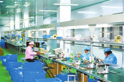 近日,奋尔富电子科技(赤壁)有限公司生产车间内,智能化生产线满负荷运转,工人们忙碌地进行产品组装和质量检验等工作,全力赶制订单。