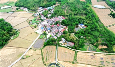 村落地形呈凹字形。东、西、北三面环山,南面开阔,有优质高标准基本农田4800亩;村庄地属亚热带,夏无酷暑,冬无严寒,森林覆盖率90%。
