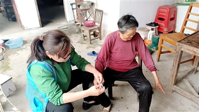 每周,周晓蓉都会背着装满物品的背包,穿梭于城乡的大街小巷。背包里装着剃须刀、理发工具、指甲剪、按摩膏等物品。她带着热情,踏入老人家中,脸上绽放出亲切的笑容,瞬间拉近了与老人之间的距离。