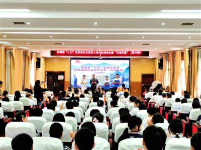 本报讯 记者黄柱、通讯员邹娟、刘騉报道:近日,一场精彩纷呈的苏轼经典作品诵读会在赤壁市第五初级中学报告厅举行。此次活动由赤壁市文联、赤壁市教育局联合主办,赤壁市朗诵协会、第五初级中学承办,赤壁市作家协会协办,吸引了约200人参与。