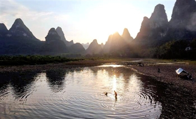 近日,无人机航拍的广西桂林漓江风光如诗如画。漓江是桂林山水的灵魂,它蜿蜒穿过山脉,犹如一幅美丽的水墨风景画。图为在广西桂林市阳朔县拍摄的漓江风光。