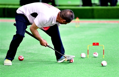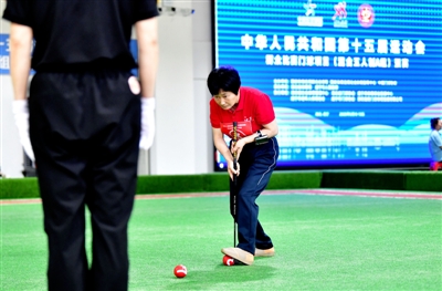 5月12日,咸宁门球馆,第十五届全国运动会群众比赛门球项目(混合五人制A组)预赛迎来第三个比赛日。