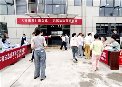 宣传紧扣主题,聚焦民生热点,围绕物权、婚姻家庭、侵权责任等与群众生活密切相关的法律法规,通过设立民法典服务台、悬挂横幅标语、发放宣传资料、解答法律咨询等方式,向企业员工普及民法典和各类法律法规知识。对企业和企业员工普遍关心的常见民事法律问题进行耐心细致讲解,引导群众依法办事、依法维权。