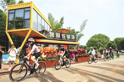 据了解,该驿站由泉湖村委会主导规划,于今年3月启动建设,总建筑面积240平方米。主体采用双层集装箱结构,融合工业风与自然元素,内部划分休闲水吧、自行车专属停车区及开放式庭院三大功能区。骑手既可在此补充饮品食品、调试装备,亦可在绿意盎然的庭院中放松休整,满足能量补给与社交需求。