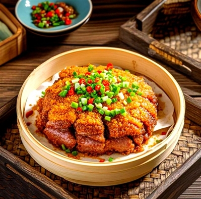 夹起一块粉蒸肉,轻轻咬上一口,肉的鲜嫩、糯米的软糯、酱汁的浓郁,瞬间在口中爆发开来,仿佛是一场味觉的盛宴。那是一种无法用言语形容的美妙,是一种只有在家乡才能品尝到的幸福。