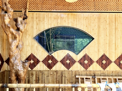 竹房子、竹长廊、竹门楼等特色建筑,竹熊猫、竹马等竹制景观,还有竹围栏、竹篱笆、竹筏、竹椅子、竹桌子等……只要客户想要的,他就想办法生产。经过蒸煮、碳化、烘干等多道工序,原本易腐的竹材变得比钢材更坚韧。