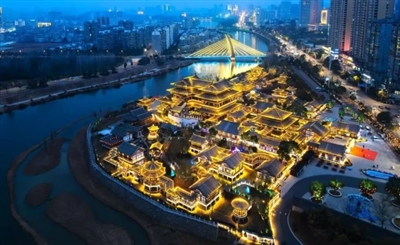 这是一座以宋代美学为魂的大型仿古园林,逛灯笼市集、吃特色小吃、看水幕光影秀,穿越千年感受风雅宋韵。
