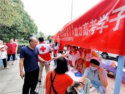社会各界聚力助学子逐梦 本报讯 记者陈婧报道:6月7日上午,在各高考点,众多爱心企业纷纷加入到“高考志愿服务点”的搭建中来。有的为过往考生发放凉茶和饮用水,缓解考生们因紧张和炎热带来的不适;有的则为送考家长提供消暑降温物资,让家长们在等待过程中也能感受到一份清凉与关怀。