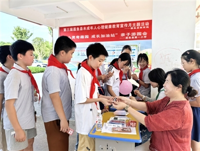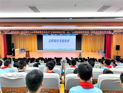 6月4日,由咸宁市文明办、咸宁市未成年人心理健康辅导中心、嘉鱼县文明办、嘉鱼县教育局主办,嘉鱼县心之泉社会工作服务中心、嘉鱼县未成年人心理健康辅导站联合开展的“阳光‘心’行动 守护伴成长”心理健康辅导活动在该县实验小学举行。活动中,心理咨询师通过寓教于乐的方式,帮助学生们缓解考前压力、培养积极心态。